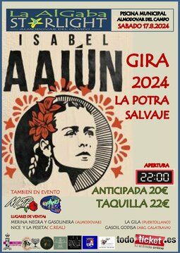 Concierto estelar de este festival STARLIGTH 2024, Isabel Aaiun nos visitara al Festival para poder disfrutar de sus letras, musica y fuerza en todas sus canciones de esta artista que nos esta sorprendiendo dia a dia.