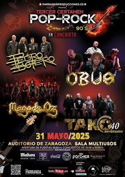TERCER CERTAMEN POP-ROCK 90'S, , PEDRO BOTERO, OBUS , MAGO DE OZ Y TAKO ...¡¡¡¡NO TE LO PUEDES PERDER !!!